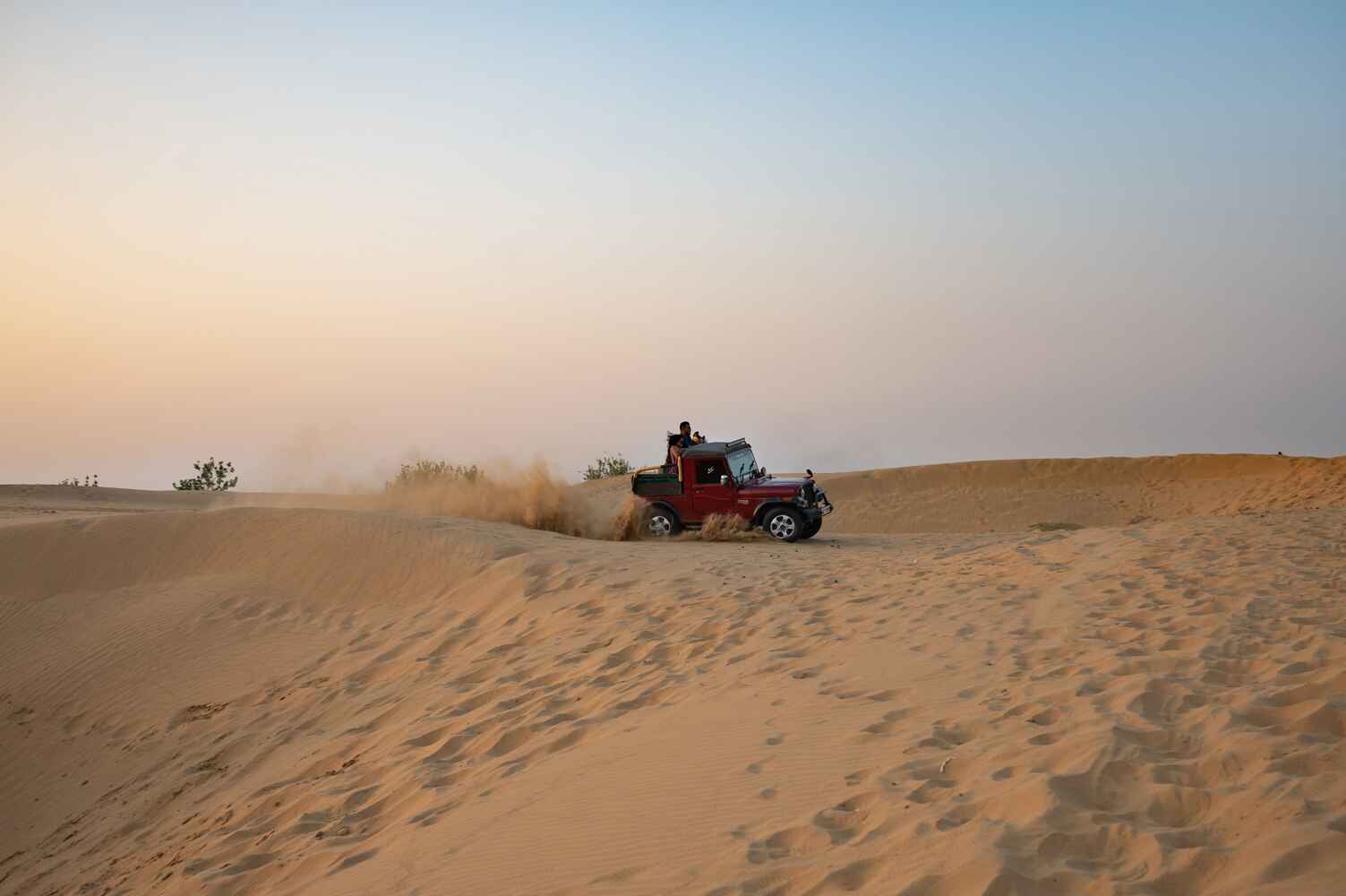 If you’re looking for a faster, more thrilling way to explore the vast Thar Desert, then a Jeep Safari in Jaisalmer is an absolute must. At Desert Island Camp & Resort Jaisalmer, we offer high-adrenaline desert rides that take you deep into the heart of the sand dunes, showcasing the wild beauty, remote landscapes, and unforgettable views of Rajasthan’s golden desert.